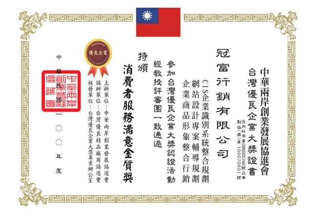 冠富網路行銷 榮獲"消費者服務滿意金質獎"