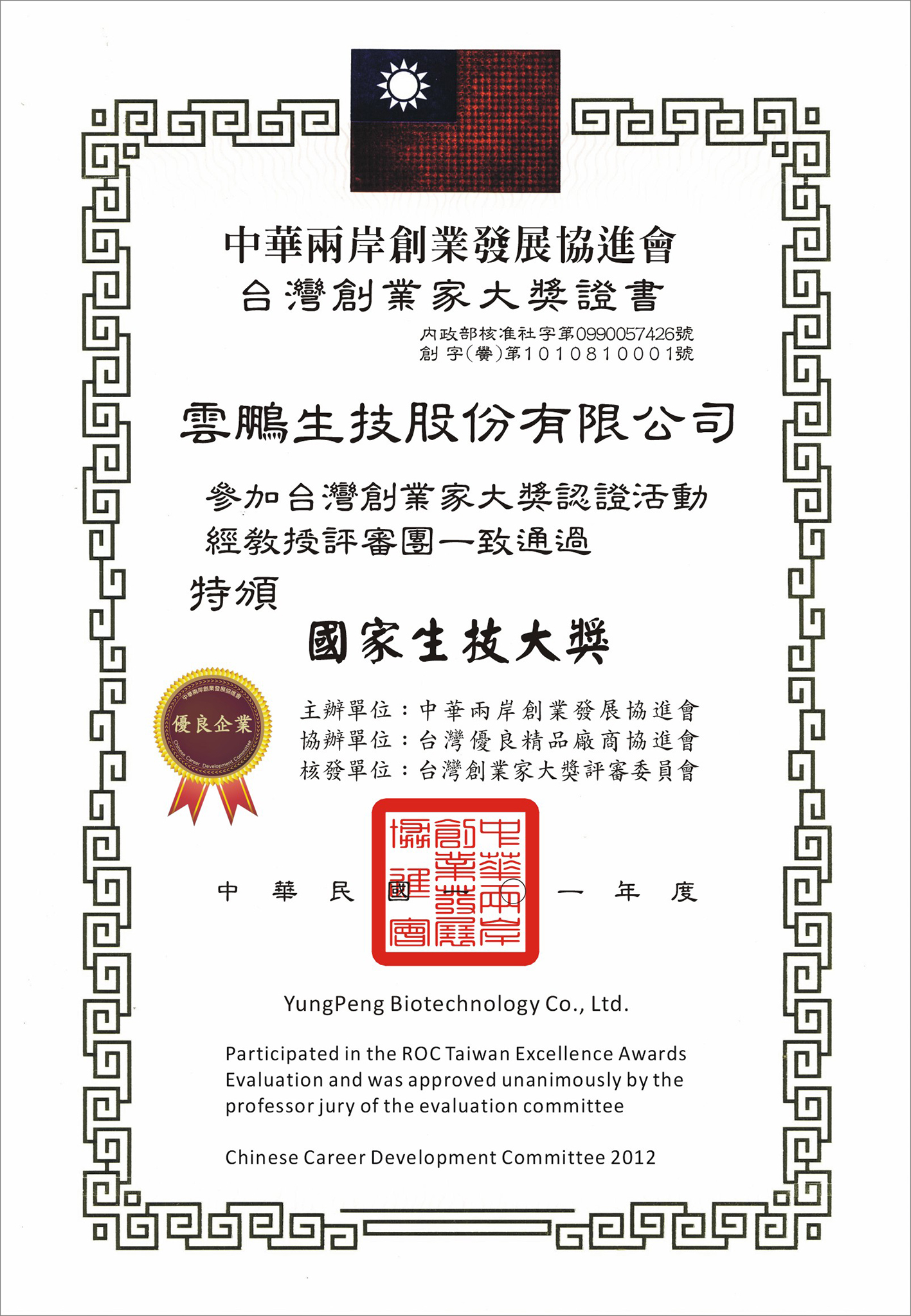 「雲鵬生物科技股份有限公司」秉持著『創新、研發、健康』三大目標,多年來由陳介甫教授(前國立中國醫藥研究所所長、中國醫藥研發基金會榮譽董事長)所帶領的專業研發團隊,積極投入研發致力於樟芝子實體人工培養,為將『牛樟芝子實體』其效益推至全世界理想的實現。